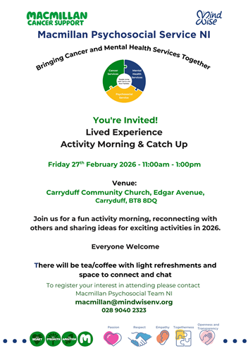 Anyone affected by cancer across Northern Ireland, patients, family members, carers, and others important to the person with a cancer diagnosis. We focus on family recovery, defined by you, to include those who matter most to you.